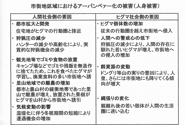 ここでは、農山村や市街地にヒグマが出没するのはいかなる要因によるものか?