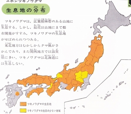 また、国内におけるツキノワグマの生息数は、約10,000頭と推定されている。しかし、堅果類の凶作の2004年に2,300頭、2006年に4,600頭が捕殺されており、その後も頻繁に目撃されていることから、もっと生息数は多いのではないかなど、正確な生息数は不明である。2010年、毎日新聞の聞き取り調査での推定では、16,000~26,000頭と幅が広い。