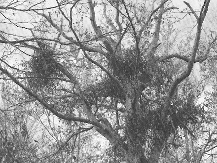 - ブナの大木の先端近くまで登るツキノワグマ。