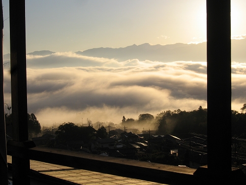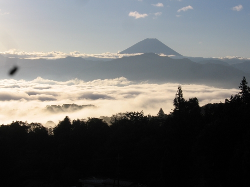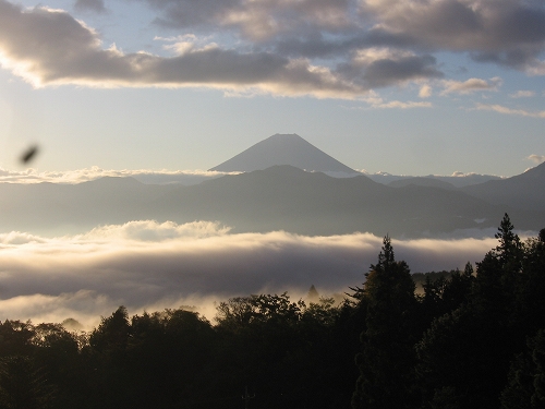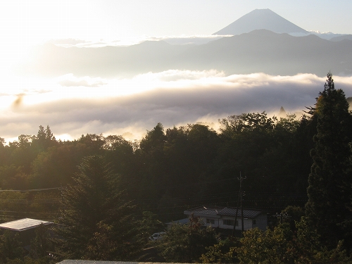 - 甲府盆地の西部、南アルプス櫛形山の中腹のロッジから富士を望む。