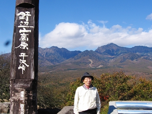 - 平沢峠にて。背後は八ヶ岳連峰。83歳の秋。