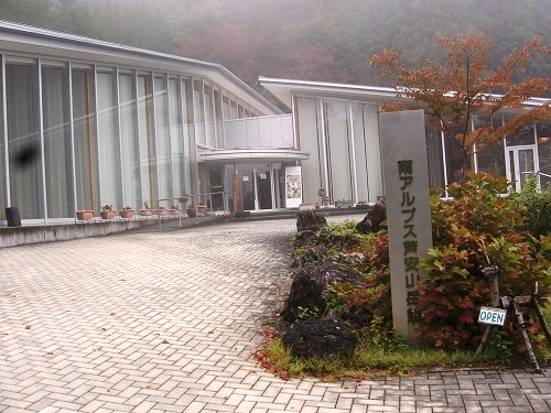 郷土記念館から引き返し、大月出身の最高の山岳写真家 白籏史朗さんの作品が展示されている芦安の南アルプス山岳博物館に向かう。山岳写真、珍しい動植物、馬鉄の展示などを見た後、南アルプスのDVD20分を見てループ橋を経由して、実家のあった上市之瀬集落のはずれの高台に最近建設された「おそとのてらす」に向かう、ここがこれから3泊のねぐらである。