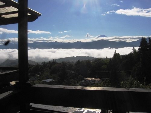 - 南アルプス櫛形山の中腹のロッジから富士を望む。