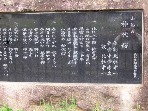 - 推定樹齢2,000年の神代杉をたたえる歌碑。